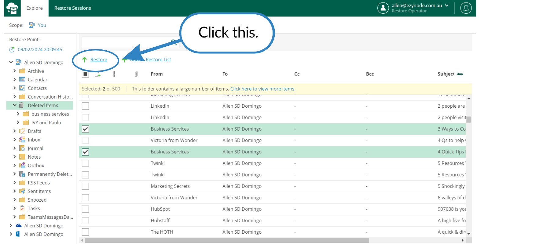 View the recovered emails are now available inside the "Restored Email folder "of your Outlook account.