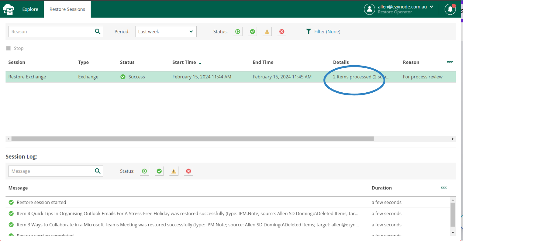 It will prompt you the four tabs namely Items, Restore mode, Reason, and Summary: